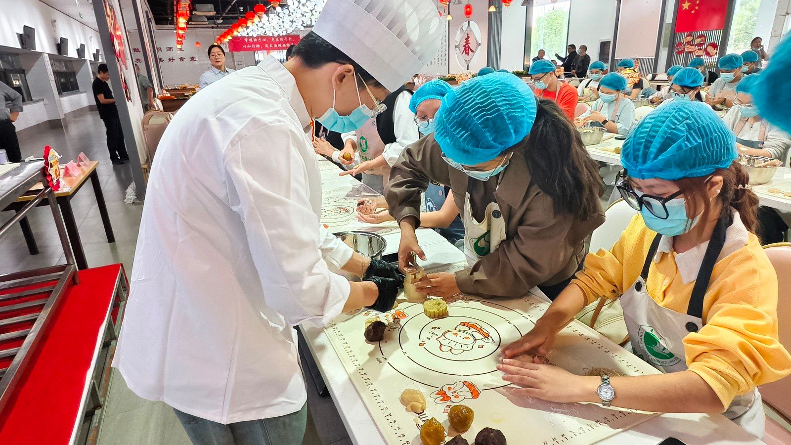 秋意渐浓,佳节双至,为传承中华美食文化、丰富校园文化生活,9月26日下午,饮食服务中心在沁苑餐厅精心举办了“‘月’满校园 ‘饼’藏温情”第八期烹饪课堂活动。学校党委常委、副校长王乐华,后勤保障部党委书记胡绪仁、部长万方、副部长朱志峰出席活动。50余名师生代表欢聚一堂,解锁中秋传统饮食文化新体验,留存满含校园温度的团圆记忆。