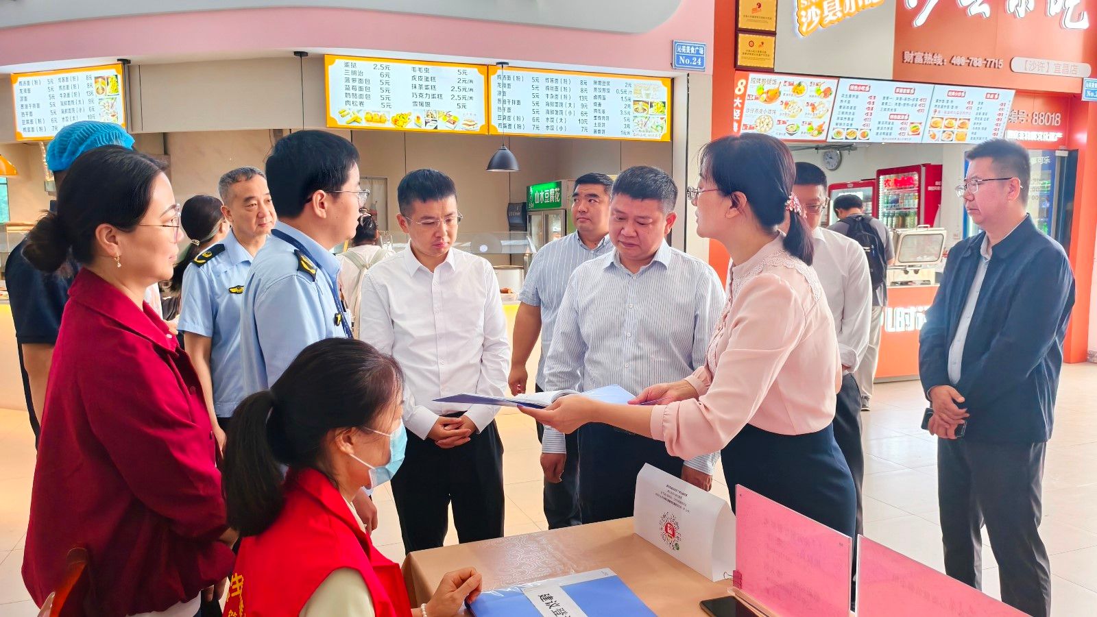 为切实筑牢校园食品安全防线,保障留校师生在双节期间的饮食健康与安全,9月29日上午,西陵区政府副区长潘廷瑞、区市场监督管理局局长孔晓宏、区市场监督管理所所长谭斌一行到我校沁苑餐厅开展节前食品安全专项检查。三峡大学副校长王乐华、后保部部长万方陪同检查。