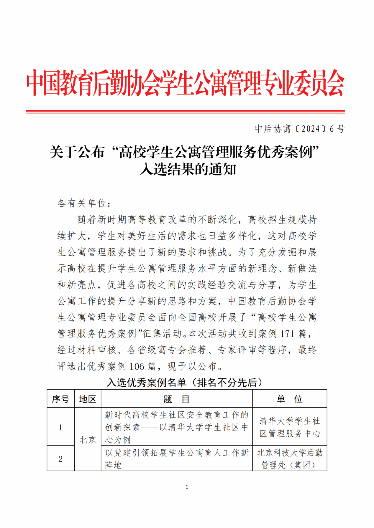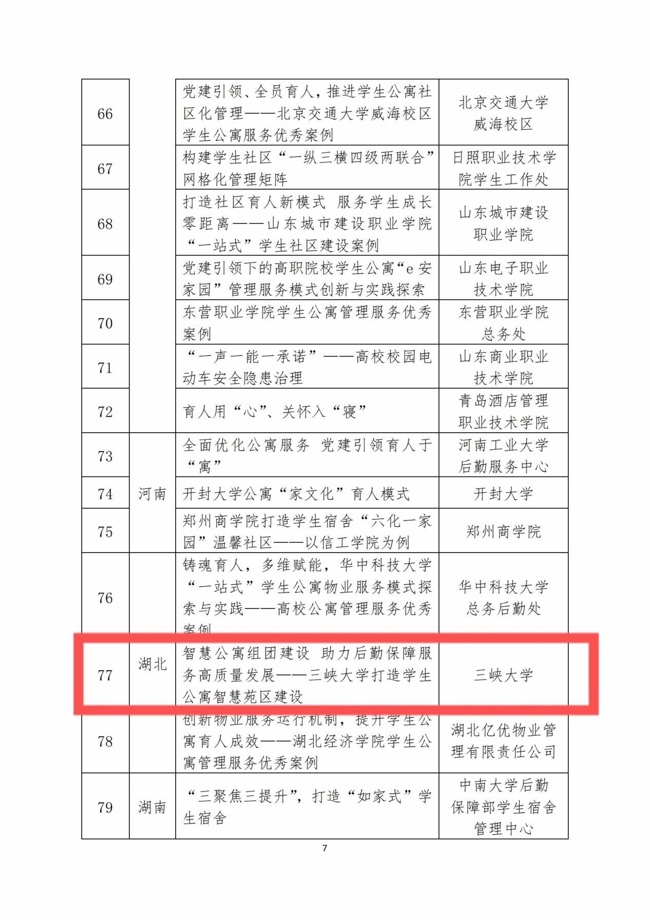 近日,中国教育后勤协会学生公寓管理专业委员会公布了全国高校学生公寓管理优秀服务案例名单。经中国教育后勤协会学生公寓管理专业委员会组织申报、各省级寓专会推荐、专家评审等程序,我校《智慧公寓组团建设 助力后勤保障服务高质量发展——三峡大学打造学生公寓智慧苑区建设》案例成功入选。
