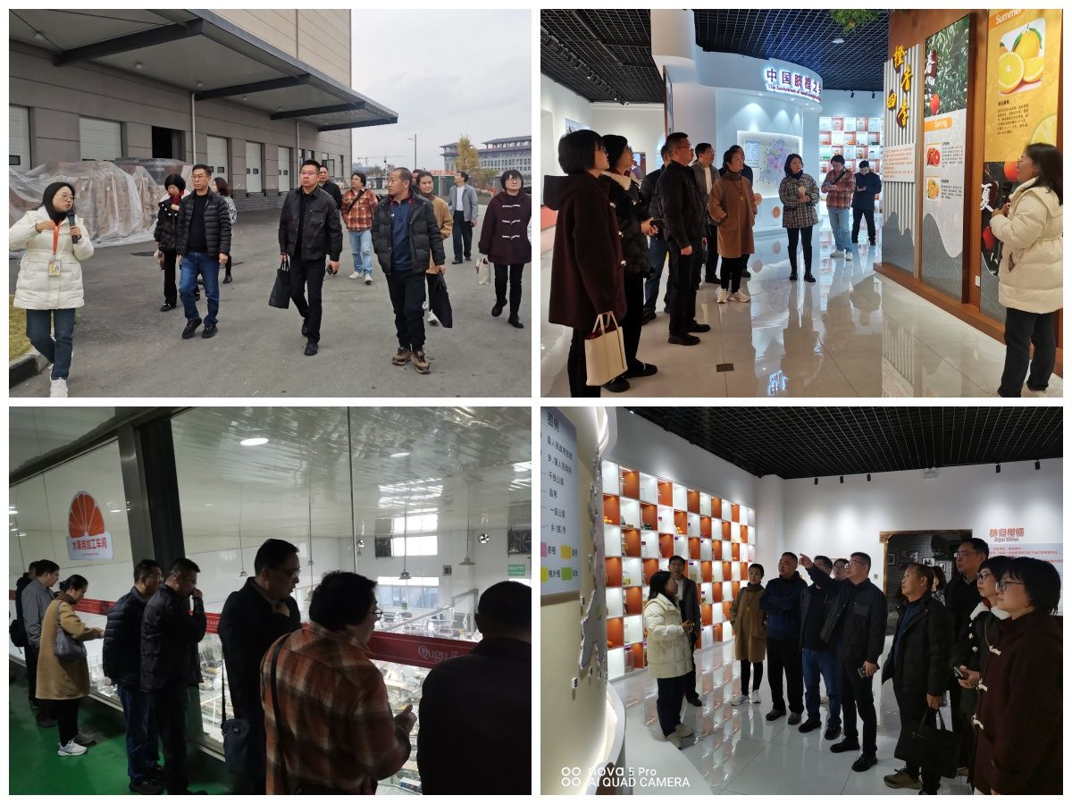 在参观过程中,大家深入了解了宜昌柑橘的历史渊源、文化背景以及现代化产业发展模式。屈姑集团相关人员热情接待并详细讲解了柑橘历史文化展厅、现代化生产线等区域,展示了屈姑集团在柑橘深加工技术等方面的研发成果。