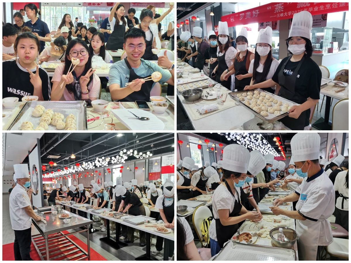 6月12日,100名毕业生代表齐聚沁苑餐厅,共上一堂“‘包’罗美好 ‘蒸’藏回忆”毕业生烹饪课。三峡大学党委常委、副校长张成,后保部党委书记胡绪仁、副部长问清泉参加活动。