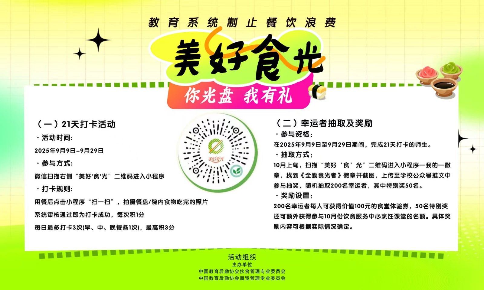 为积极响应教育系统“美好‘食’光——你光盘・我有礼”校园系列活动号召,三峡大学饮食党支部自9月9日起,开展为期21天的“红舸・光盘”党员志愿服务行动。通过充分发挥基层党组织战斗堡垒作用与党员先锋模范作用,以实际行动在校园内树牢勤俭节约新风尚。