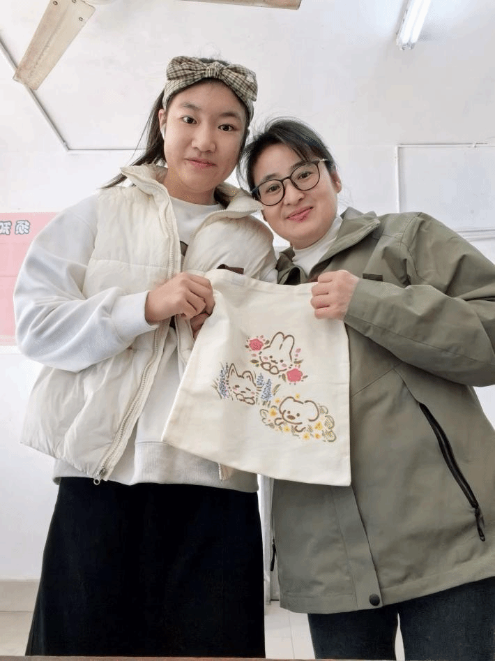 “阿姨们的工作看似普通,但她们所做的事一点也不普通。她们是真的把我们当作自己的孩子来疼。”王同学动情地说,“所以我亲手绘制了这个布袋,想用这样一份小小的心意,感谢周阿姨一直以来无微不至的照顾与陪伴。”