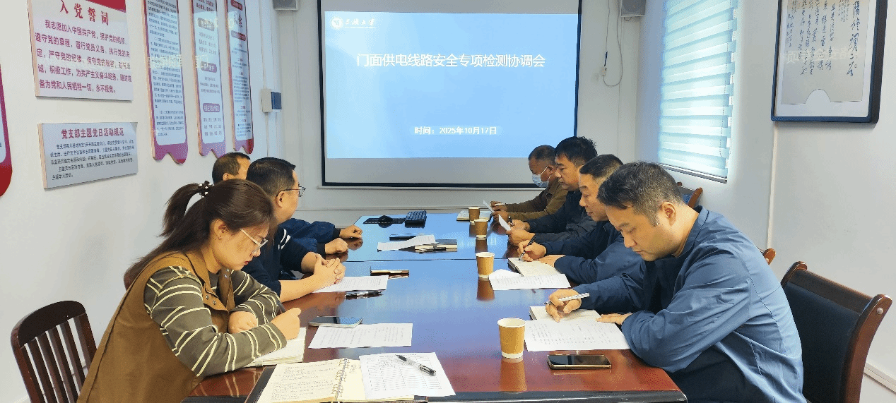 为筑牢校园商业门面用电安全防线,保障供电线路稳定运行,近期,房产管理中心开展商业门面供电线路安全专项检测工作。